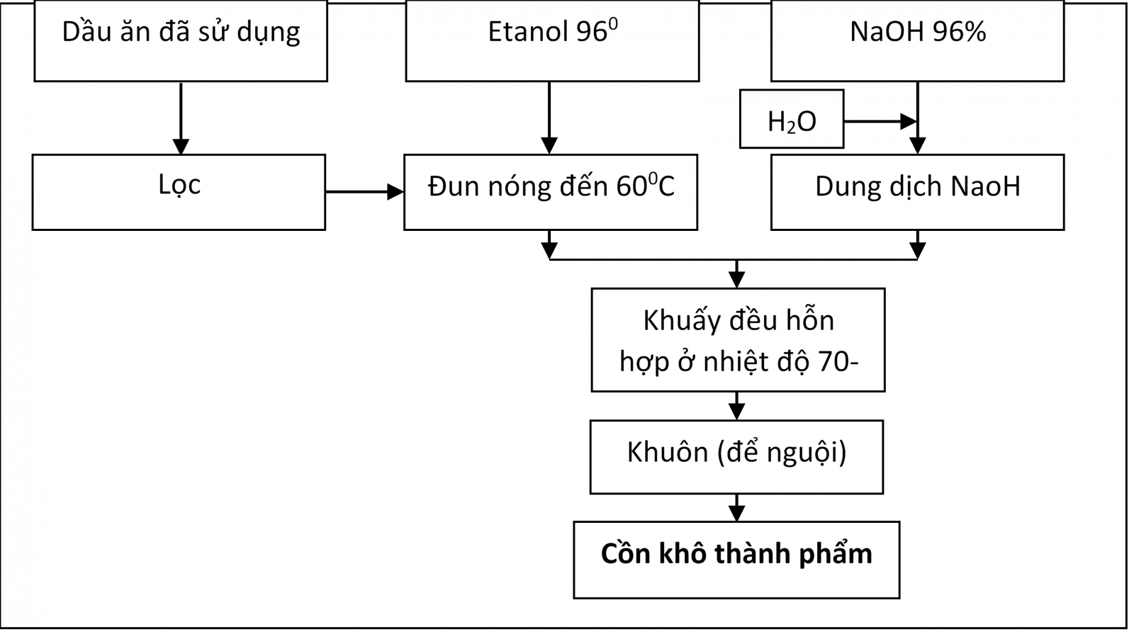 Cồn khô (cồn thạch) hiện đang được sử dụng tương đối phổ biến trong gia đình hoặc cơ sở dịch vụ ăn uống, thông thường cồn khô được sản xuất từ nguyên liệu là cồn (etanol) và chất phụ gia tạo gel (như natri stearat, canxi axetat, dẫn xuất ceclulozơ…). Giải pháp nhằm sản xuất cồn khô từ chất phụ gia là dầu ăn (acid béo) đã qua sử dụng và xút (NaOH) tạo cồn khô có chất lượng tương đương với các sản phẩm tương tự trên thị trường nhưng giá thành rẻ, góp phần bảo vệ môi trường.