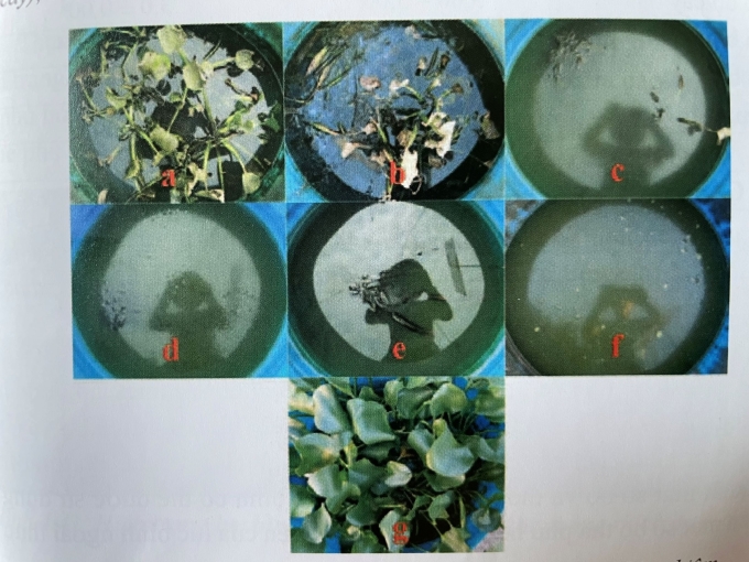 Kết quả thử nghiệm sau 4 tháng lục bình bị tiêu diệt theo mật độ bọ với hình a thả mật độ 1 cặp bọ mỗi cây,