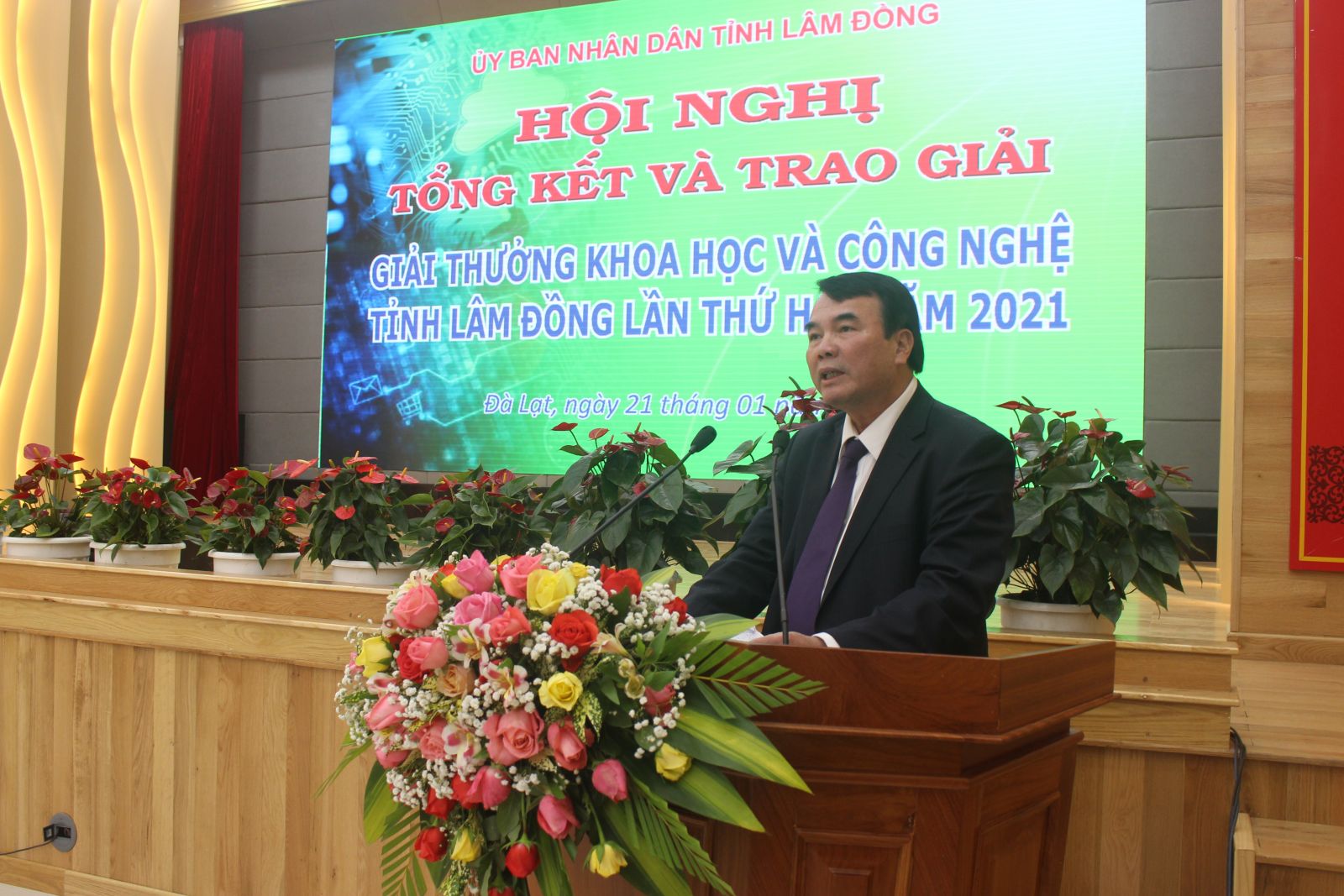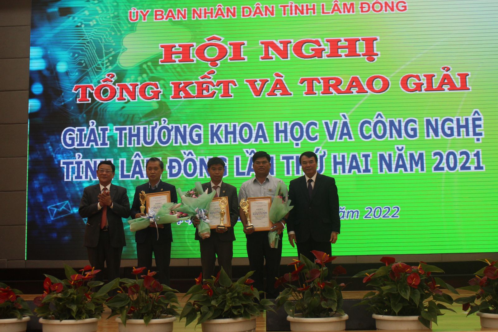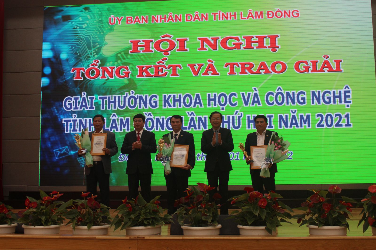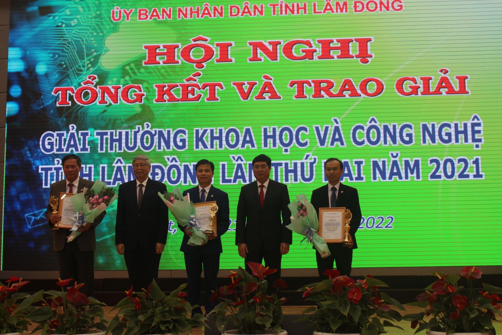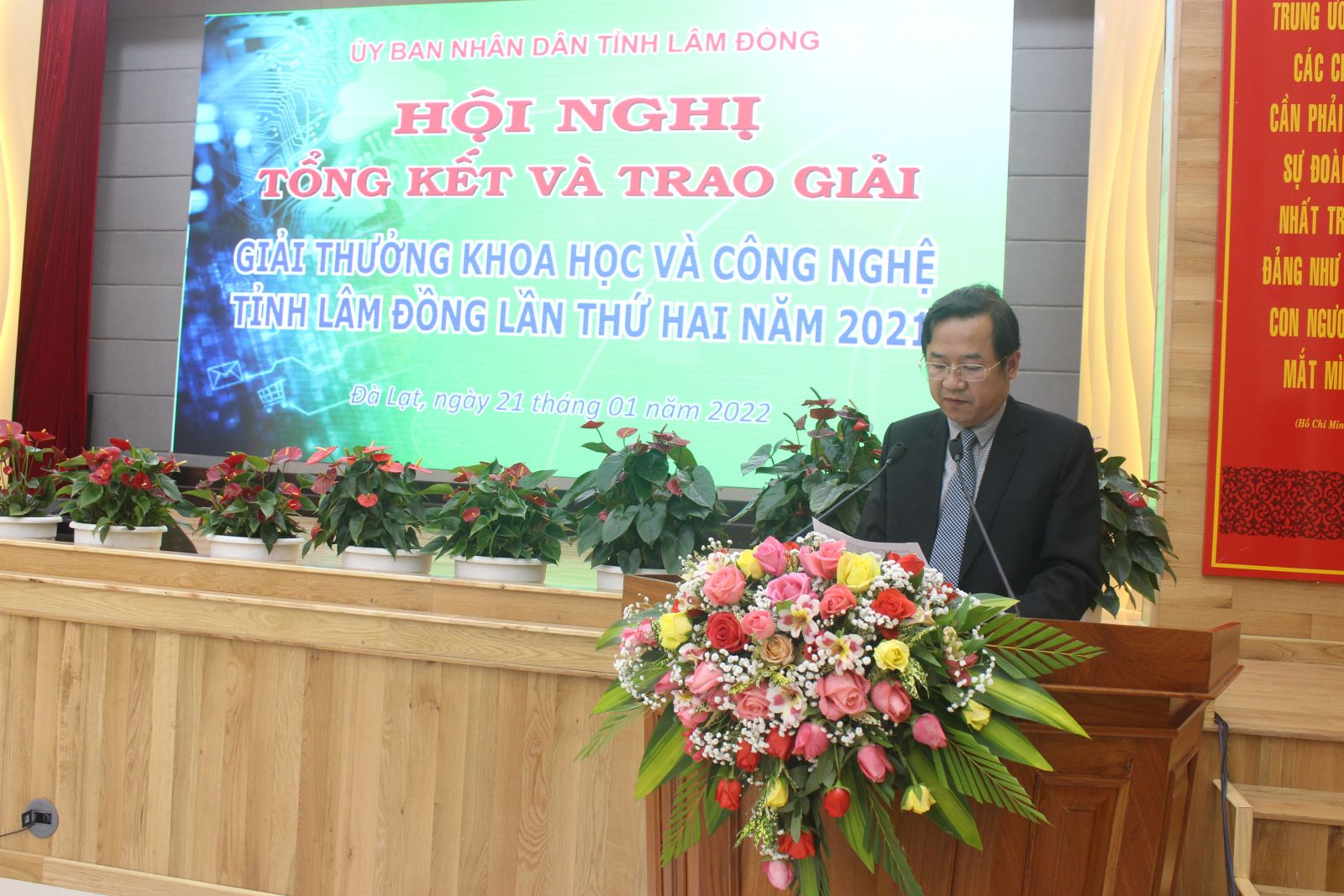 Chiều 21/1, UBND tỉnh Lâm Đồng đã long trọng tổ chức lễ trao Giải thưởng Khoa học và Công nghệ tỉnh Lâm Đồng lần thứ hai năm 2021. Tham dự có GS.TSKH. Đặng Vũ Minh – Chủ tịch danh dự Liên hiệp các Hội Khoa học Kỹ thuật Việt Nam; các đồng chí: Trần Đình Văn – Phó Bí thư Thường trực Tỉnh ủy, Trưởng đoàn ĐBQH khóa XV đơn vị tỉnh Lâm Đồng, Tôn Thiện Đồng – Phó Chủ tịch HĐND tỉnh; Phạm S – Phó Chủ tịch UBND tỉnh; lãnh đạo các sở, ban, ngành, đoàn thể, cùng các nhà khoa học trên địa bàn toàn tỉnh.